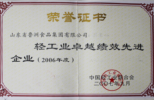 中國輕工業(yè)卓越績效先進(jìn)企業(yè)