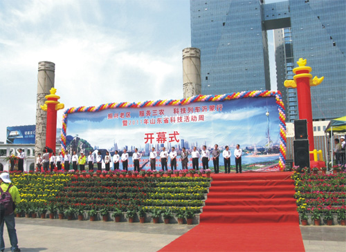5月14日,“振興老區(qū) 服務三農 科技列車沂蒙行”活動在臨沂市舉行。山東省委常委、副省長孫偉、省政協(xié)副主席李德強出席開幕式。科技部黨組成員、紀檢組組長郭向遠出席開幕式,科技部等部委有關領導、科技列車專家服務團全體成員,臨沂市副市長左沛廷等有關領導以及社會各界代表也參加了開幕式。