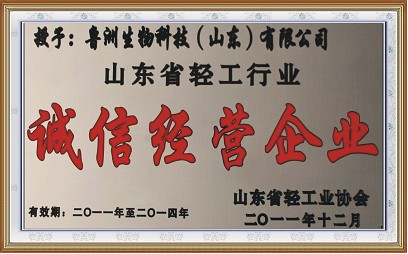 1月10日,山東省輕工業(yè)協(xié)會(huì)在濟(jì)南召開全省輕工業(yè)工作會(huì)議,對(duì)在“ 誠(chéng)信山東”建設(shè)工作中做出貢獻(xiàn)的誠(chéng)信經(jīng)營(yíng)企業(yè)進(jìn)行表彰,會(huì)上,魯洲生物科技(山東)有限公司被授予“山東省輕工行業(yè)誠(chéng)信經(jīng)營(yíng)企業(yè)”并頒發(fā)了獎(jiǎng)牌。