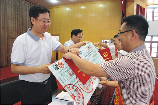 相關(guān)領(lǐng)導(dǎo)為獲得我縣科學(xué)技術(shù)獎(jiǎng)的企業(yè)頒發(fā)了證書。集團(tuán)喜獲沂水縣科學(xué)技術(shù)特別貢獻(xiàn)一等獎(jiǎng),侯市長為我們頒發(fā)了相關(guān)證書。