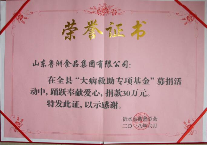 魯洲集團(tuán)參加了此次捐款活動(dòng),捐款30萬元,助力我縣精準(zhǔn)扶貧,為更多因病致貧、因病返貧及因病不能脫貧的家庭奉獻(xiàn)愛心。