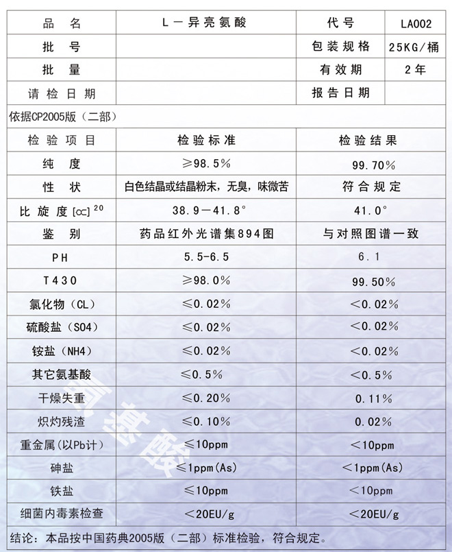 L一異亮氨酸是二十種蛋白氨基酸內(nèi)的脂肪族類氨基酸之一。也是人體八種必須氨基酸之一,屬于支鏈氨基酸。能促進(jìn)蛋白質(zhì)合成;提高生長(zhǎng)激素和胰島素水平;維持機(jī)體平衡;增加身體的免疫功能;治療精神障礙;促進(jìn)食欲的增加和抗貧血的作用;還具有促進(jìn)胰島素分泌的作用。主要應(yīng)用于醫(yī)藥,食品行業(yè),具有保肝,護(hù)肝作用,在肌肉蛋白質(zhì)代謝中極為重要。如果缺乏會(huì)出現(xiàn)體力衰竭,昏迷等狀況。生糖兼生酮氨基酸,可作為營(yíng)養(yǎng)增補(bǔ)劑。用于氨基酸輸液或口服營(yíng)養(yǎng)添加劑。